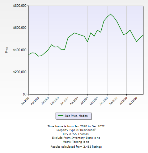 The median average selling price for a home in St. Thomas for 2021 sat at $550,000.