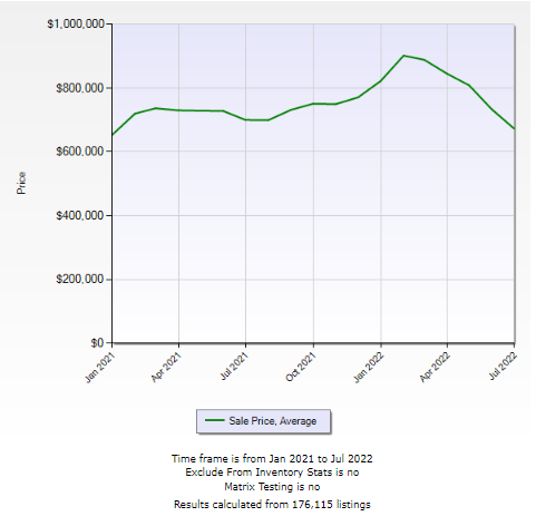 Sales have slowed dramatically to the slowest in history for the time. Demand is pent up, but people are fearfully waiting to see what the future holds. In July last year 677 homes sold. In July 2022 we saw Buyers only purchase only 390 homes across the City. Even January 2022, historically the slowest month of the year, had more sales at 400 homes